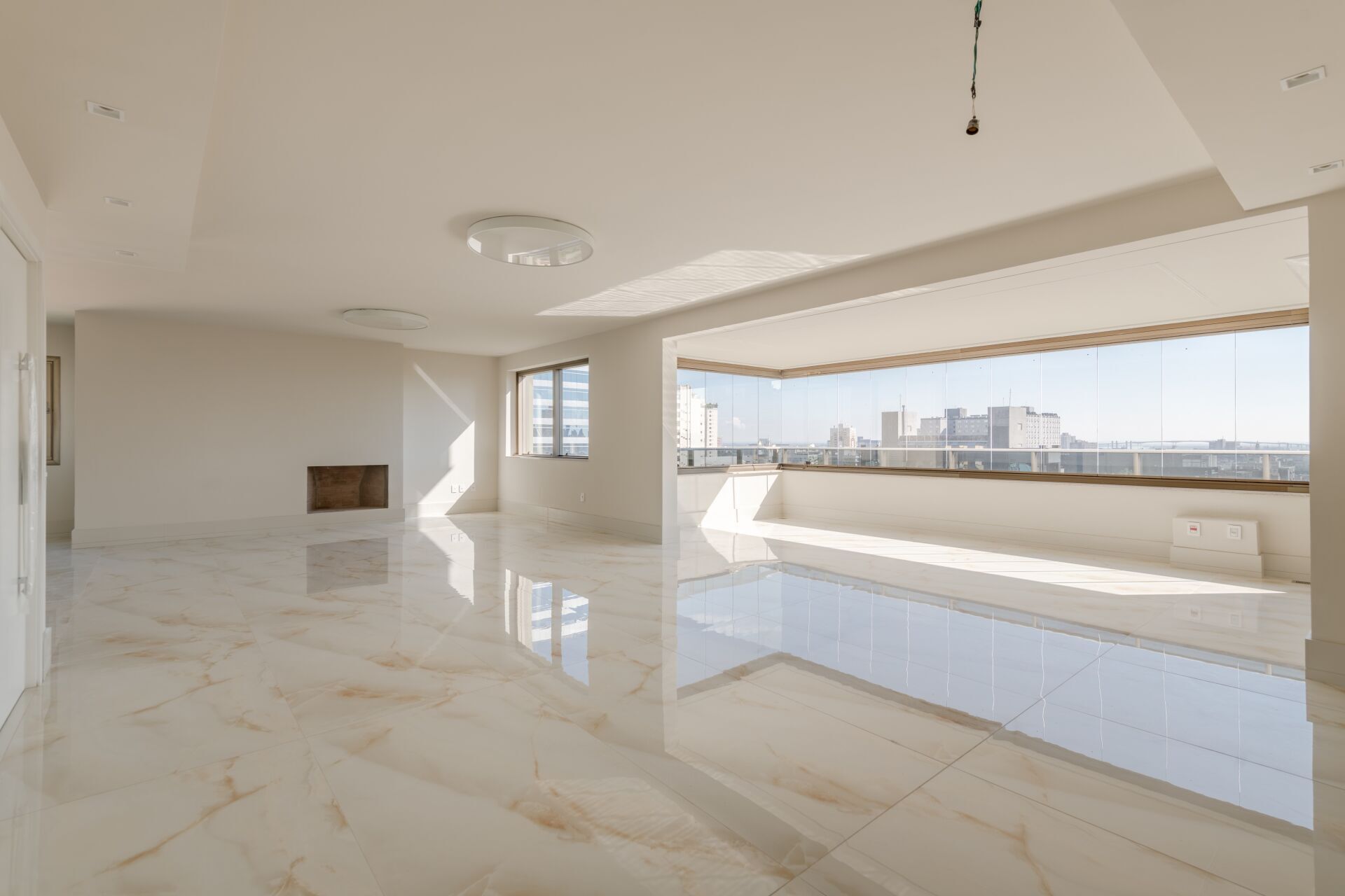 Área social com hall privativo, living com lareira e 3 ambientes, lavabo e ampla sacada com espaço gourmet. Acesso de serviços, cozinha e copa, lavanderia, dormitório e banheiro de serviços. Área íntima com 3 suítes, sendo 1 suíte master com amplo closet e banheiros ele/ela.